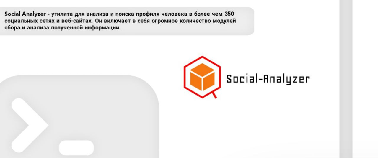 Social Analyzer - утилита для анализа и поиска профиля человека в более чем 350 социальных сетях и веб-сайтах.