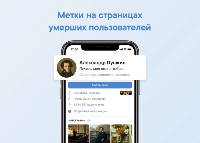 Социальная сеть «ВКонтакте» начала добавлять специальные отметки на страницы пользователей, которых нет в живых. Об этом «ВКонтакте».