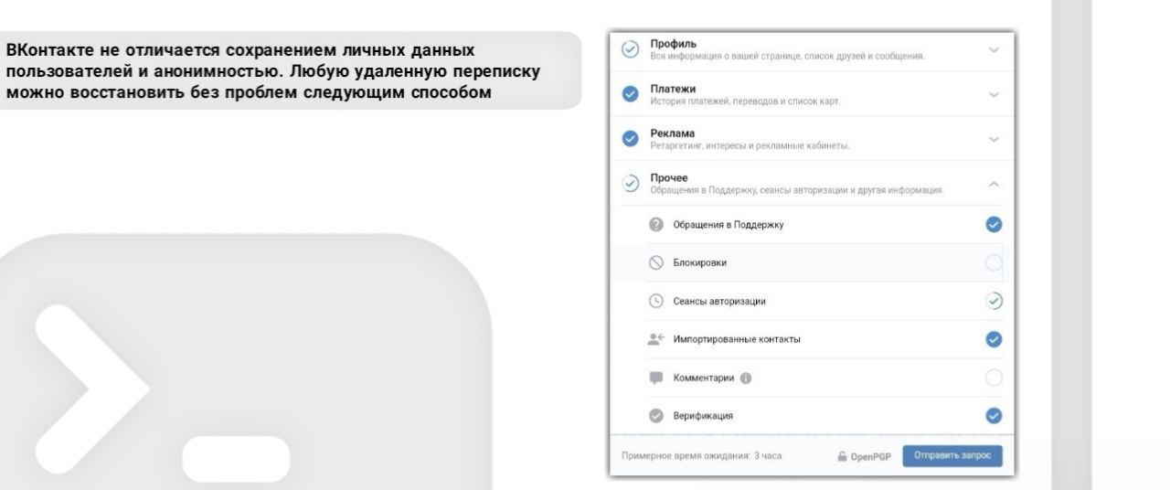 ВКонтакте не отличается сохранением личных данных пользователей и анонимностью. Любую удаленную переписку можно восстановить без проблем следующим способом: