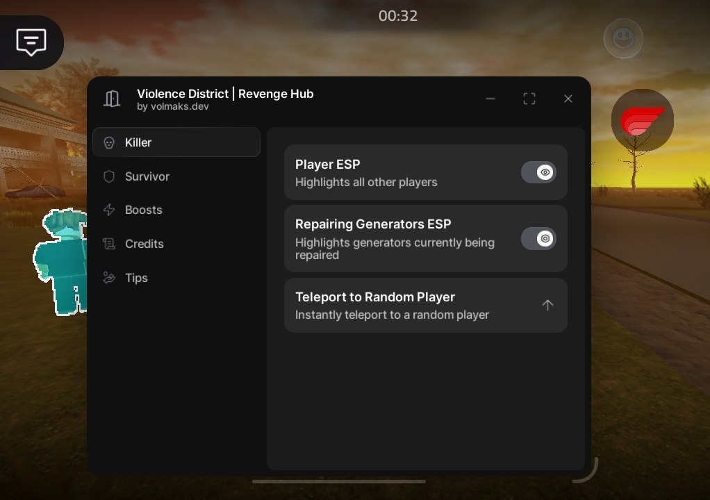 loadstring(game:HttpGet("https://raw.githubusercontent.com/volmaksDev/My-Scripts/refs/heads/main/ViolenceDistrict.lua"))("@codexxscripts")❤3👍1
