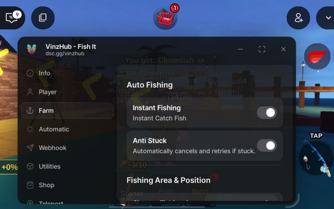 🇷🇺: Имбовый скрипт на игру "Fish It! 🐟", с множество функций которые упростят игру. Авто продажа, ходьба по воде, авто рыбалка.
