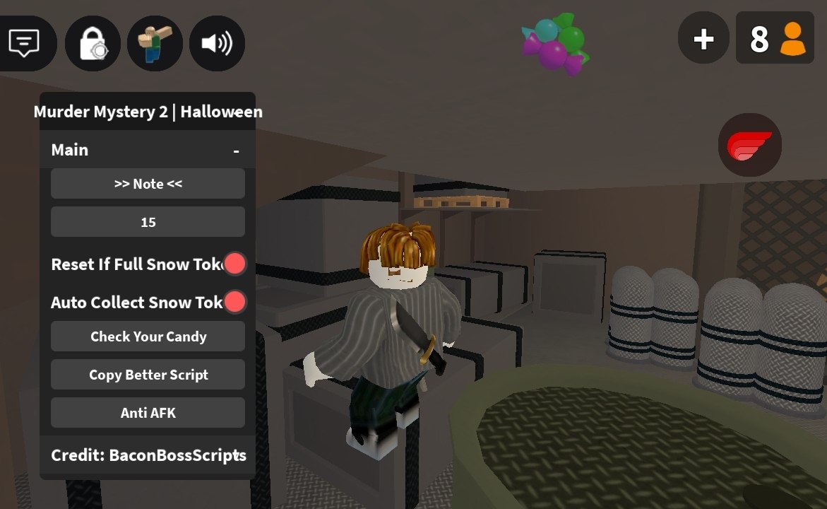 🇷🇺: Скрипт на авто-фарм хэллоуинских конфет, рекомендую ставить скорость на 15 что бы не кикало с игры.
