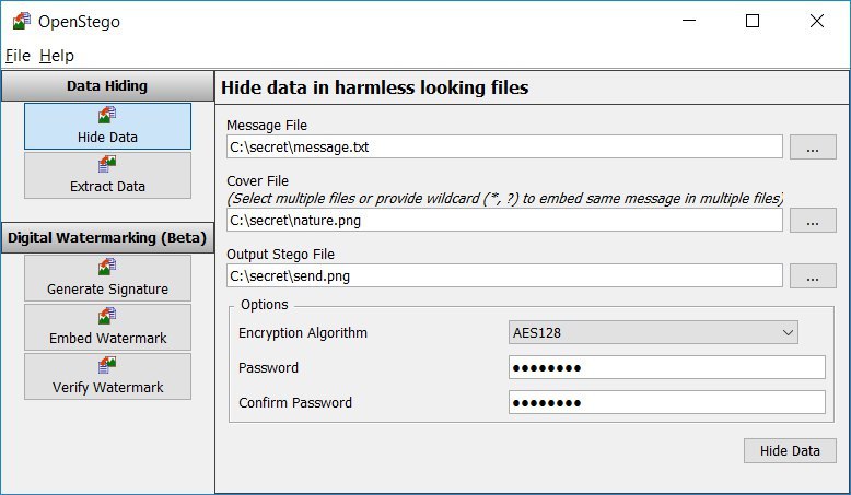 OpenStego es una aplicación de esteganografía que proporciona dos funciones: