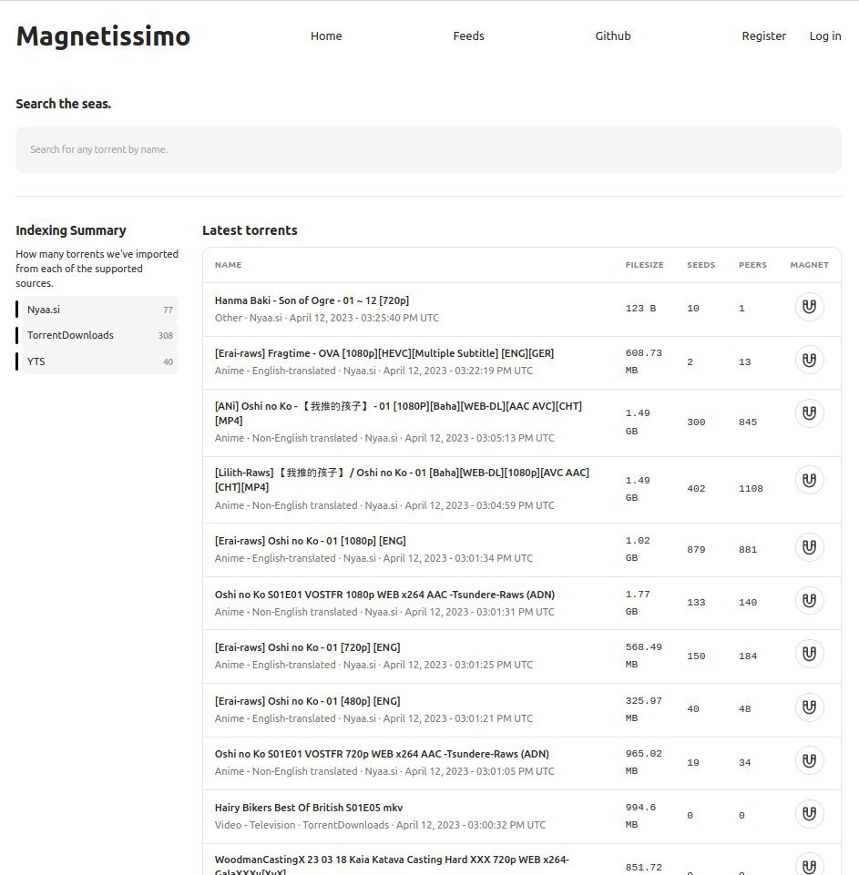 Magnetissimo es una aplicación web propia que indexa todos los sitios de torrents populares y almacena enlaces magnéticos en su base de datos local.