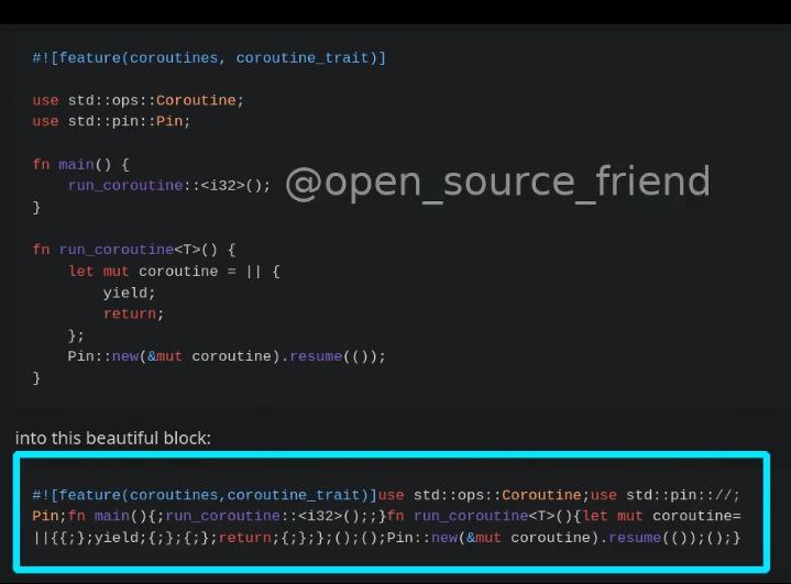 Convertir código Rust en rectángulos perfectos para confundir el código.
