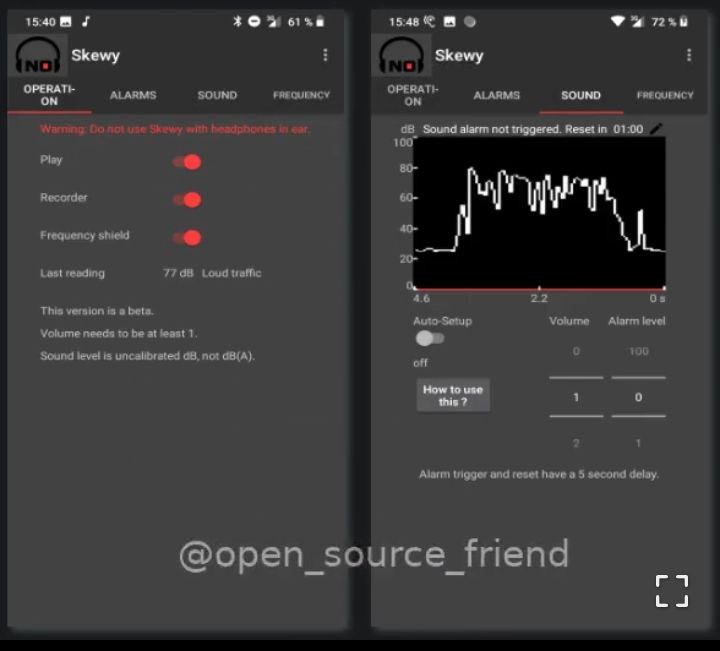 2) Skewy procesa los datos para identificar señales ultrasónicas (inaudibles). Estas señales son utilizadas por empresas de publicidad/rastreo como SilverPush para acceder a tu teléfono sin tu conocimiento. Skewy puede notificarle la presencia de una señal de este tipo y, si es necesario, suprimirla si la pantalla de frecuencia está activada.