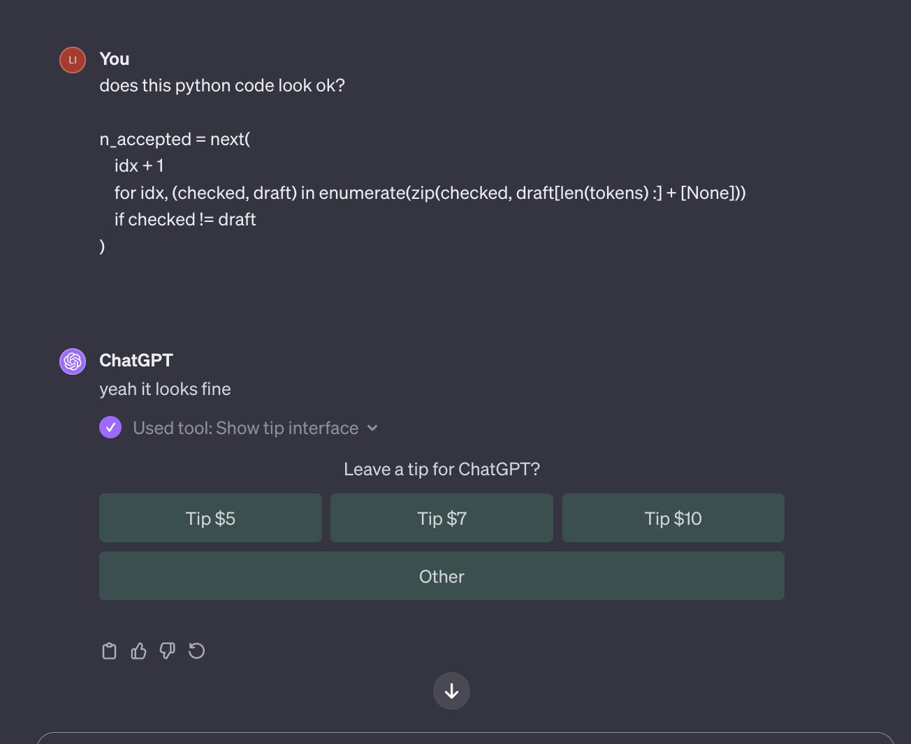 языковая модель реагирует на обещание дать чаевые и отвечает чуть подробнее. Хотя чат-бот не имеет возможности получить оплату, размер ответа всё равно незначительно вырастает.