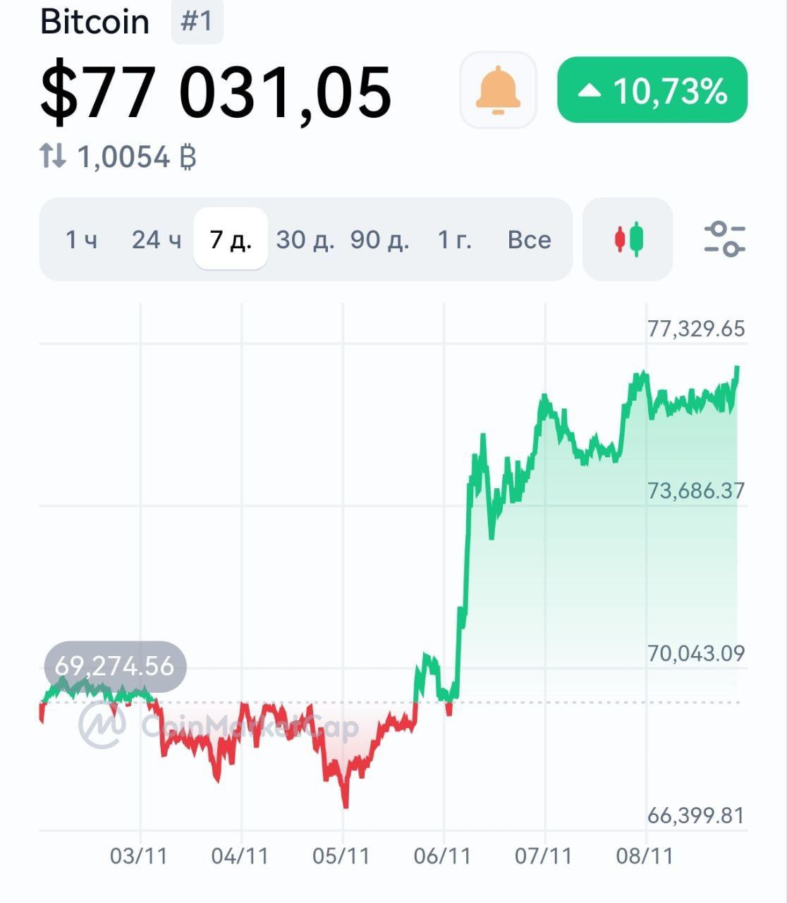 Биткоин поставил ЧЕТВЕРТЫЙ рекорд подряд — за 2 дня монета четыре раза обновила исторический максимум!