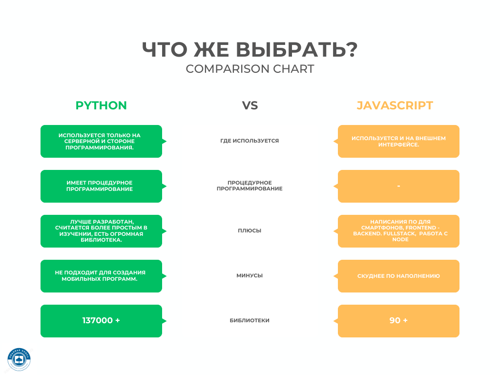 Python и JavaScript — два основных и самых распространенных языка программирования, на которых пишутся многие программы. Однако в мире IT постоянно происходят какие-то изменения и появляются нововведения. Из-за этого порой возникает дилемма, какой из языков учить или какому отдать предпочтение. Чтобы понять, нужно сравнить их основные характеристики: