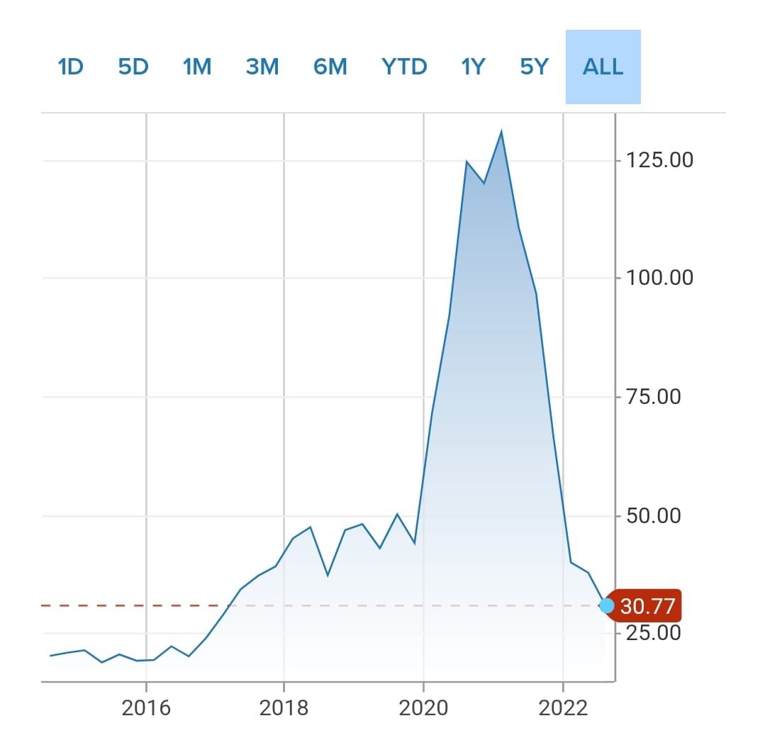 📉Состояние дел фонда Ark Invest, которым управляет главная криптовалютная красотка Кэти Вуд, позволяет говорить о том, что все достижения пяти последних лет обнулены