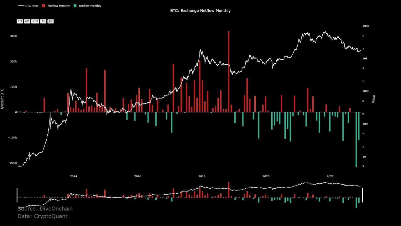 📉Достигнуты исторические максимумы по чистому оттоку (разнице между депозитами и выводами) биткоинов с бирж