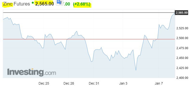 🔹تنها نکته منفی روی شاخص TC یا هزینه تبدیل کنسانتره به شمش روی است که به مرز 210$/230$ رسیده و میتواند عامل راه اندازی برخی واحدهای ذوب چین شود ... البته هنوز نشانه ای از خرید و رشد تولید مشاهده نشده است