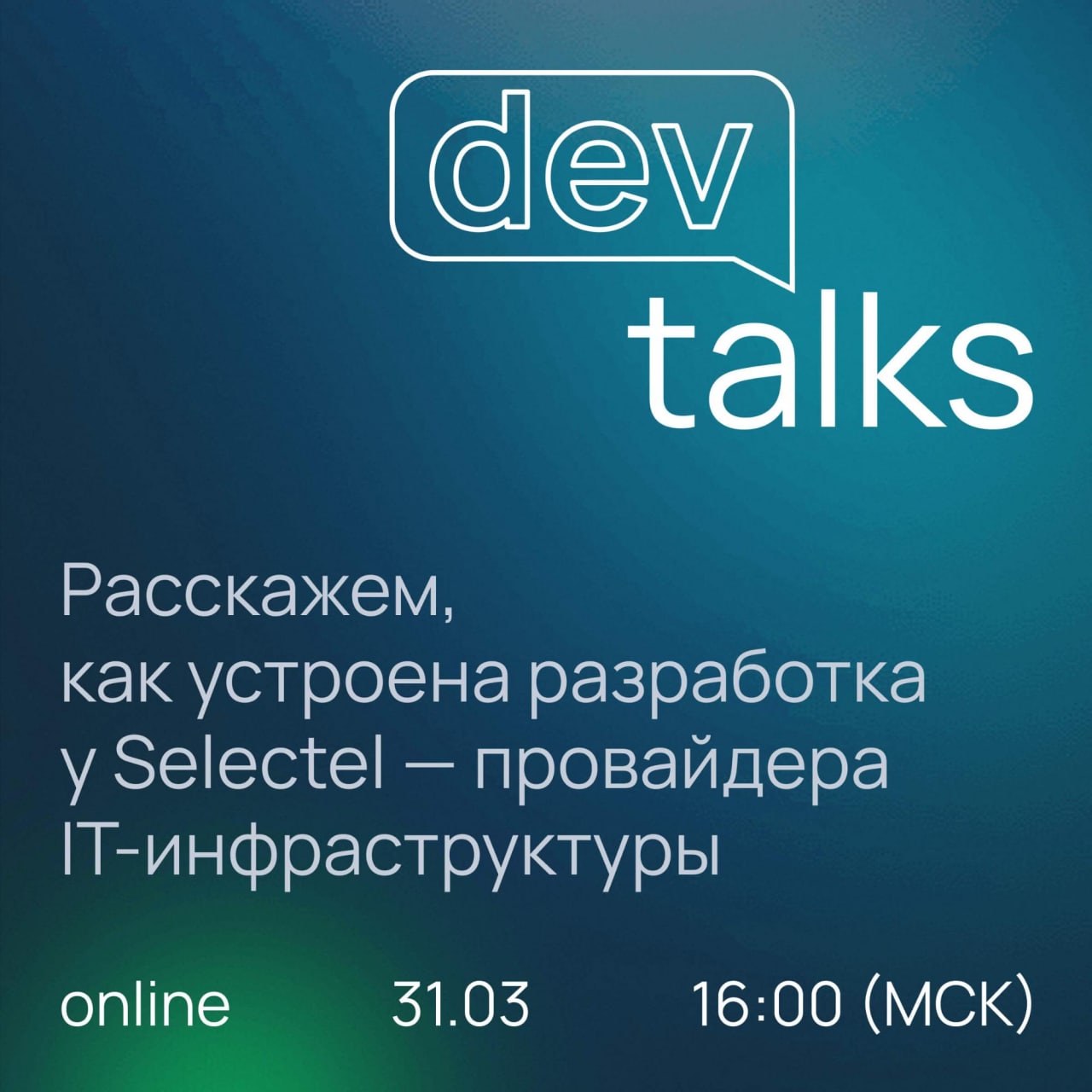 Всем привет! 31 марта в 16:00 пройдет Selectel Dev Talks от команды @SelectelNews. Программа: