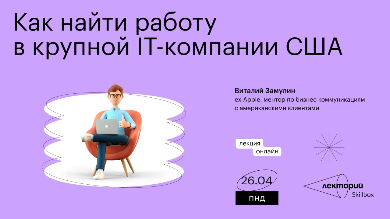 26 апреля приглашаем в Лекторий Skillbox на онлайн-лекцию о том, как айтишнику найти работу в Америке.