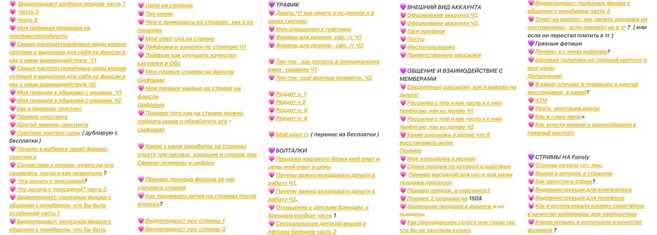 ❤️ Все нюансы работы очень подробно объясняются с примерами. Например, очень подробный и интересный разбор GFE с упором на то, как делать в этой нише продажи, не теряя мемберов;