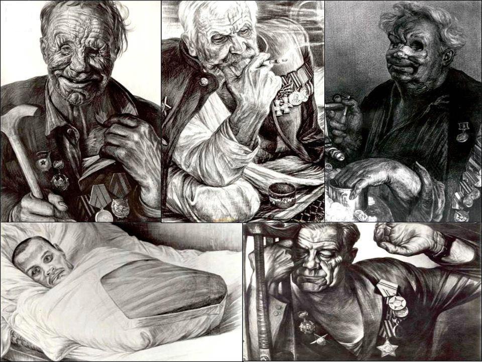 Неприглядных вояк увезли в свежеиспечённый лагерь инвалидов, созданный на Валааме. 20 ноября 1950 года там было 904 человека. Те, кто ещё был трудоспособен, получили работу. Их было 50 человек. Через 9 лет в лагере было 1500 людей с инвалидностью. Фактически, эти люди были предоставлены сами себе - отрезанные от всего мира холодными водами Ладожского озера. Сейчас на Валаамском кладбище стоит только 2 прогнивших столбика с ... номерами. Не осталось ни имён, ничего - они все ушли в землю, не оставив памятника ужасному эксперименту человеческого зоопарка героев советской власти. Единственная память - портреты "Автографы войны", сделанные художником Геннадием Добровым во время посещения острова.
