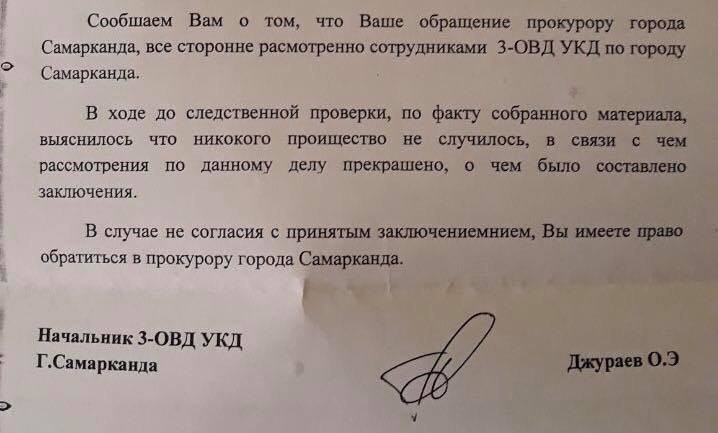 Доброй ночи уважаемые друзья и наши читатели. Ответ, который мы получили на днях из органов внутренних дел города Самарканда заставил нас испытать разные чувства и эмоции...