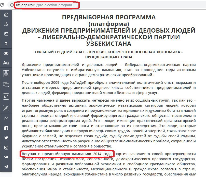 "Какая предвыборная программа у партии УзЛиДеп?" - подумала я, прочитав интервью партийного лидера. Зашла на их сайт почитать предвыборную программу🤦🏻♀️."Вступая в предвыборную кампанию 2014 года..." Сегодня 19-й день предвыборной агитации избирательной…