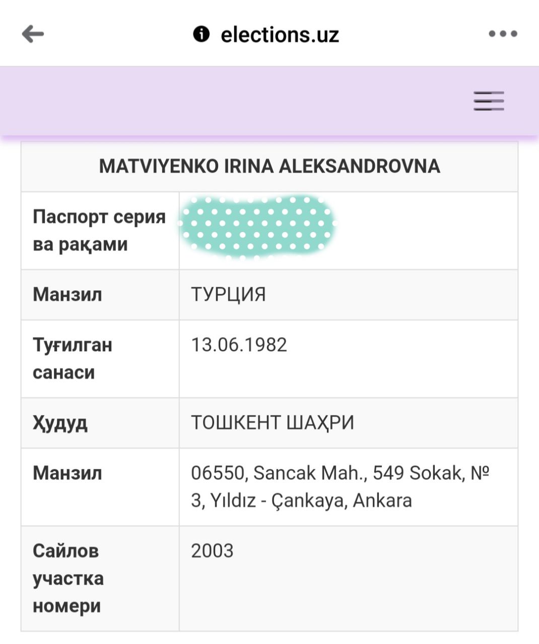Узнала свой избирательный участок на сайте elections.uz. В Стамбуле я была 26-27 декабря 2018 года и несколько часов в транзите в этом году. В Анкаре не была ни разу 🙈🙈🙈 Но ЦИК же не может врать! Придётся ехать голосовать в Турцию. Билеты тоже в ЦИК дадут?…