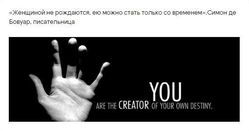 А в конце психолух решил добить и привёл цитату Симоны де Бовуар, написав её имя с ошибкой. Цитата на иллюстрации. Только вот психолух даже не озадачился погуглить, кто такая Симона де Бовуар и в каком контексте это сказано. Писательница - одна из первых феминисток, чья работа "Второй пол" стала одним из столпов женского движения.