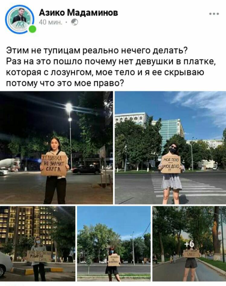 Футбольный комментатор и журналист Бабур Акмалов (Фозилхон творческий псевдоним) написал о девушках, устроивших феменистический флешмоб против насилия: