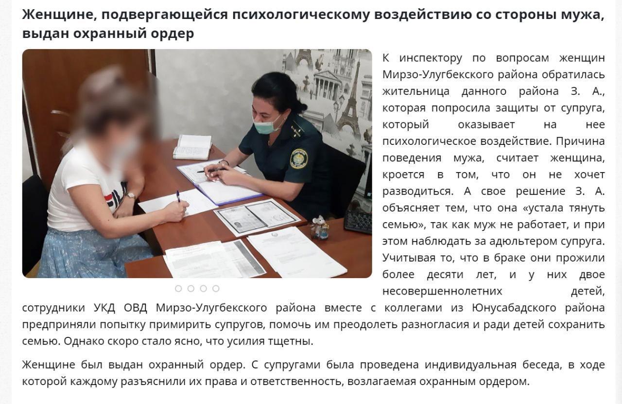 За сутки три сообщения о бездействии милиции, когда речь о защите женщин. Два случая в Ташкенте, один в Фергане.