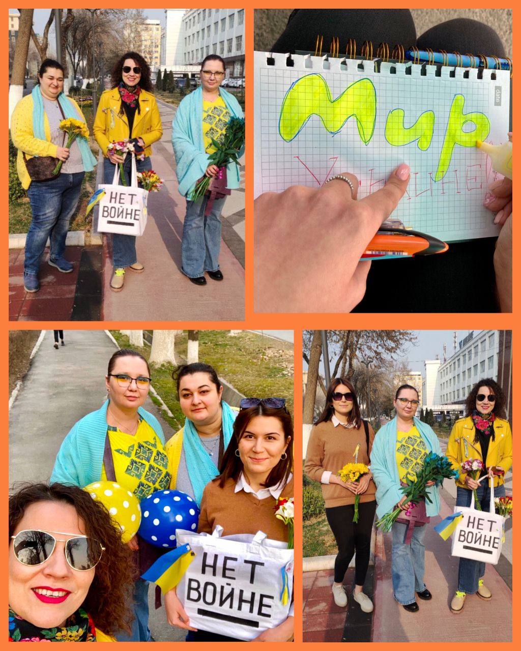 Сегодня мы с волонтёрками @nemolchiuz пошли гулять по Ташкенту. Прошли мимо посольства России, затем доехали до посольства Украины. Оставили там цветы и записку.
