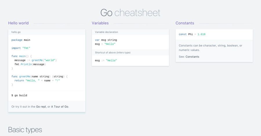 Here's a handy cheat sheet for new and experienced Go developers. #golang https://devhints.io/go https://pbs.twimg.com/media/DPAC8WvXcAA4PEU.jpg