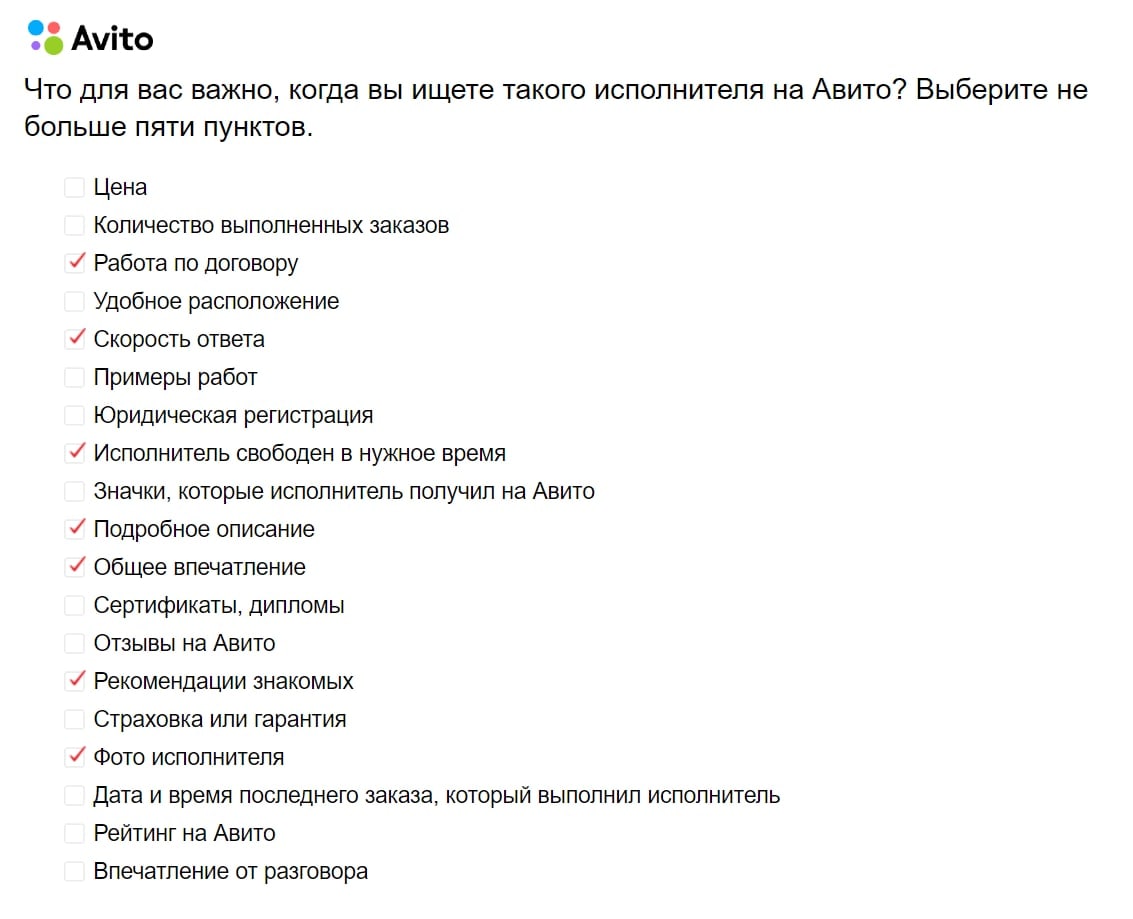 Сегодня появилось уведомление в личном кабинете - Авито проводит опрос у людей, которые заказывают услуги. Я выбрала пункт "заказываю услуги у бизнеса". Через несколько пунктов мы видим некий спойлер - какие функции сейчас рассматриваются Авито для внедрения в систему.