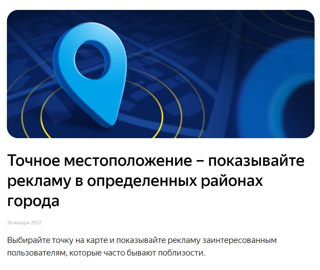 Нет времени объяснять, ссылка на новость: https://yandex.ru/adv/news/tochnoe-mestopolozhenie-pokazyvayte-reklamu-v-opredelennykh-rayonakh-goroda