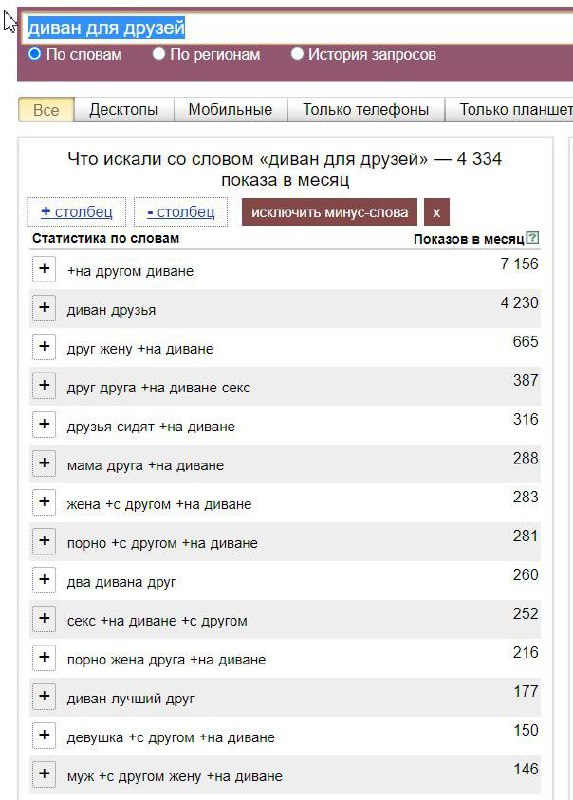 Я стал объяснять, почему это плохо и как исправить. По началу он даже меня послушал, со всем согласился и попросил показать, как самому удалять запросы из групп. ну я показал, мне не жалко. И потом началось...он стал рассказывать, что это всё вторично, а на самом деле все дело в том, что он, оказывается, физически не присутствует в рекламной выдаче. Он стал гуглить по своим запросам объявлений, находил с переменной успешностью, и тыкал мне типа "ну смотри, разве я не прав, а?". Перевести разговор в другое русло просто не получалось, он раз за разом сводил его к любимой теме: "меня не видно в директе". Та встреча окончилась ничем, я обещал сделать ему поверхностный разбор РК и отложить обсуждение до следующего раза.