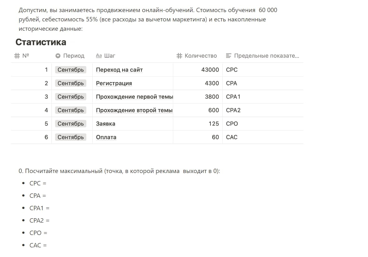 Вечер среды — самое время погрузиться в подсчёты точки безубыточности и посчитать ROI :) Предлагаю разогреть мозги и решить задачку: