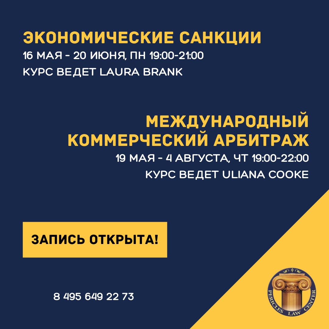 Учебно-консультационный центр «Перикл» приглашает вас на курсы: «Экономические санкции» и «Международный коммерческий арбитраж»