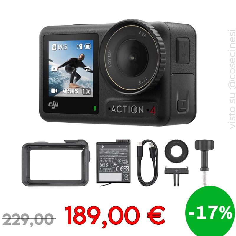 🔥 DJI Osmo Action 4 Combo Essenziale - Action cam impermeabile 4K/120fps con sensore 1/1.3", macchina fotografica subacquea,incredibili immagini con scarsa illuminazione,prestazioni cromatiche a 10 bit, 3.3 cm x 7.1 cm x 4.4 cm