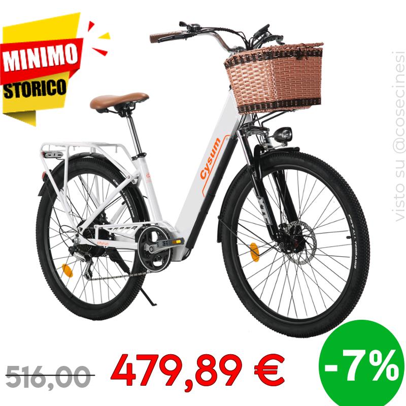 🔥 Bicicletta elettrica per pendolari Cysum Cityrun da 26", bici elettrica da città, bicicletta a basso profilo da donna, batteria al litio 36V 10Ah, portata 70-90Km