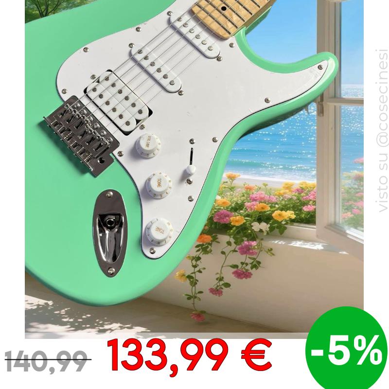 🔥 Chitarra Elettrica Verde copia strat. da 39 Pollici Stile S, Manico in Acero, Corpo in Paulownia, Pickup SSH, Ponte Regolabile, Professionale per Musica Rock