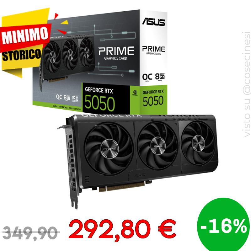 🔥 ASUS Prime NVIDIA GeForce RTX 5050 OC Edition, Scheda Grafica 8 GB GDDR6, 128 Bit, PCIe 5.0, 3 Ventole Axial-Tech, 1 HDMI 2.1b, 3 DisplayPort 2.1b, Software GPU Tweak III, Nera, PRIME-RTX5050-O8G, RTX 5050 O8 GB