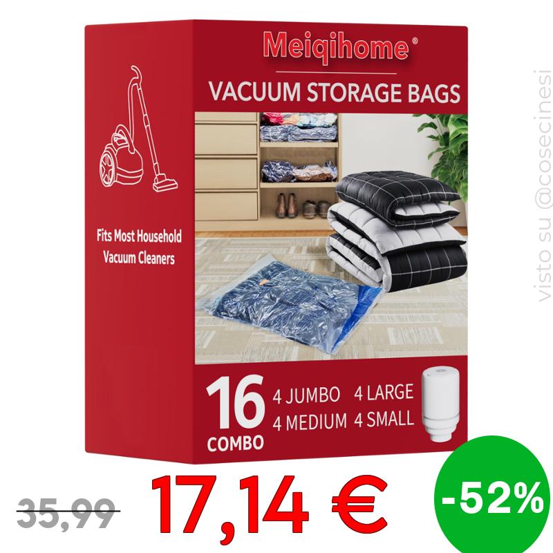🔥 MEIQIHOME Set da 16 Sacchetti Sottovuoto con Pompa Elettrica – 4J/4L/4M/4S – Sacchetti Compressione per Vestiti, Ideali per Traslochi e Viaggio, 16 Combo-PUMP