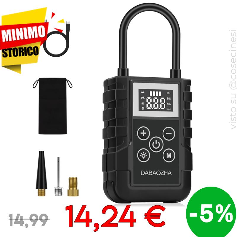 🔥 Compressore Aria Portatile, Portable Electric Air Compressor 150PSI, 4 Modalità Mini Compressore Lampada LED, Nuovo 2024 Portable Air Pump per Auto/Bici/Moto/Scooter/Pallone (Nero)