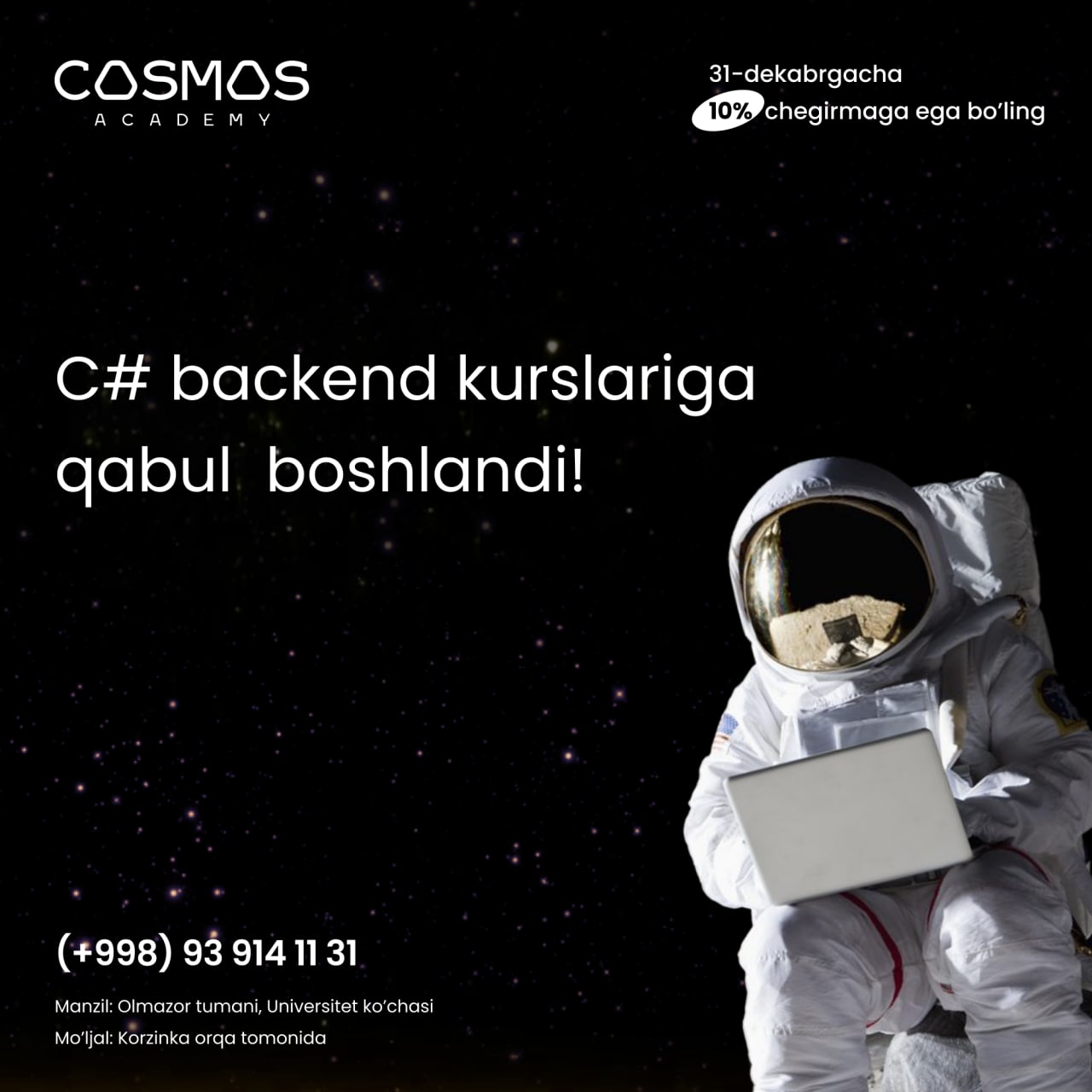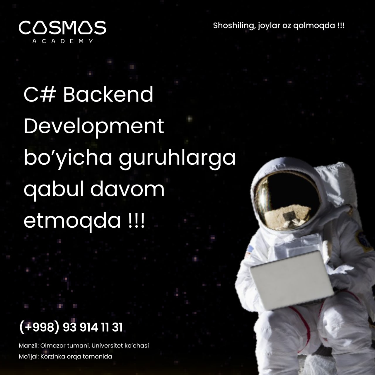 ⚡️Siz ham Backend dasturchi bo'lishni xohlaysizmi ? Sizda bizning C# Backend Development kurslarimizda o'qish va malakali mentorlardan ta'lim olish imkoniyati mavjud. Buning uchun hoziroq ro'yxatdan o'ting va yuqori maoshli kasb egasi bo'ling !!!