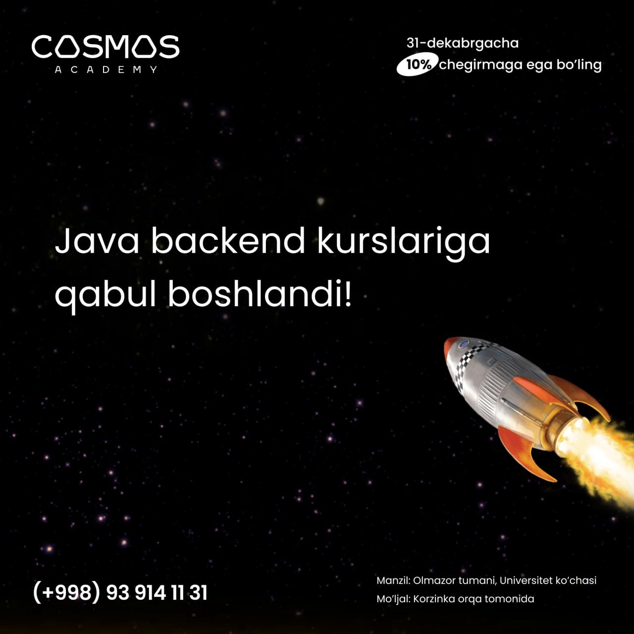 ❗️Siz ham Java dasturchi bo'lishni xohlaysizmi❓Sizda bizning Java Backend kurslarimizda o'qish va malakali mentorlardan ta'lim olish imkoniyati mavjud. Buning uchun hoziroq ro'yxatdan o'ting va yuqori maoshli kasb egasi bo'ling !!!