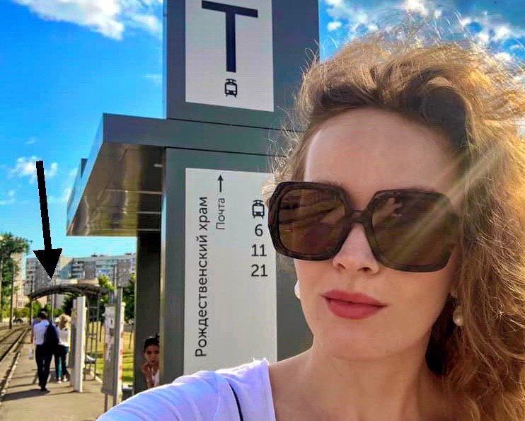 Фото: селфи Натальи Машталир с новой остановкой на фоне старой остановки (стрелочка моя). Было и стало...