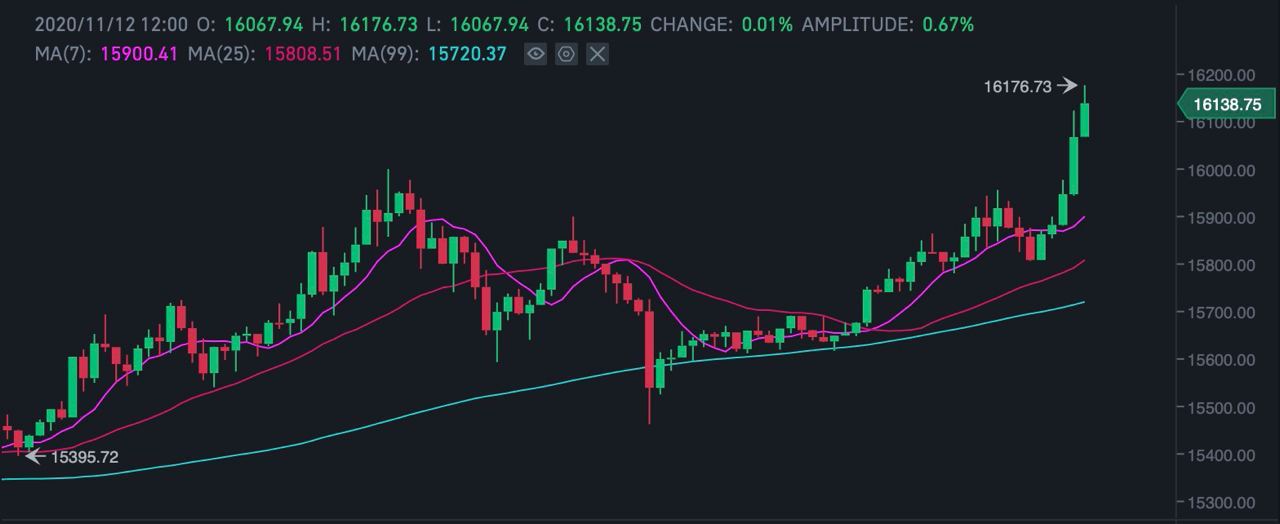 ❗️Стоимость Bitcoin превысила 16000$ впервые с января 2018 года.
