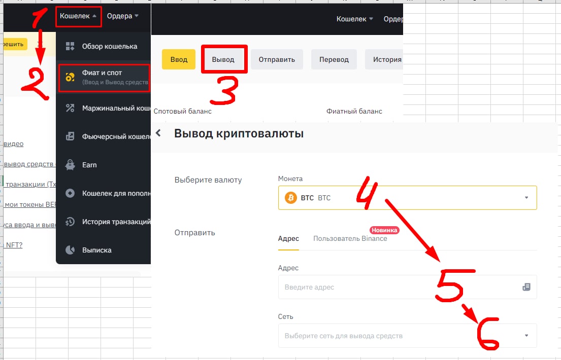 6) Выбираем адрес, сеть (какую даст байбит) и сумму вывода
