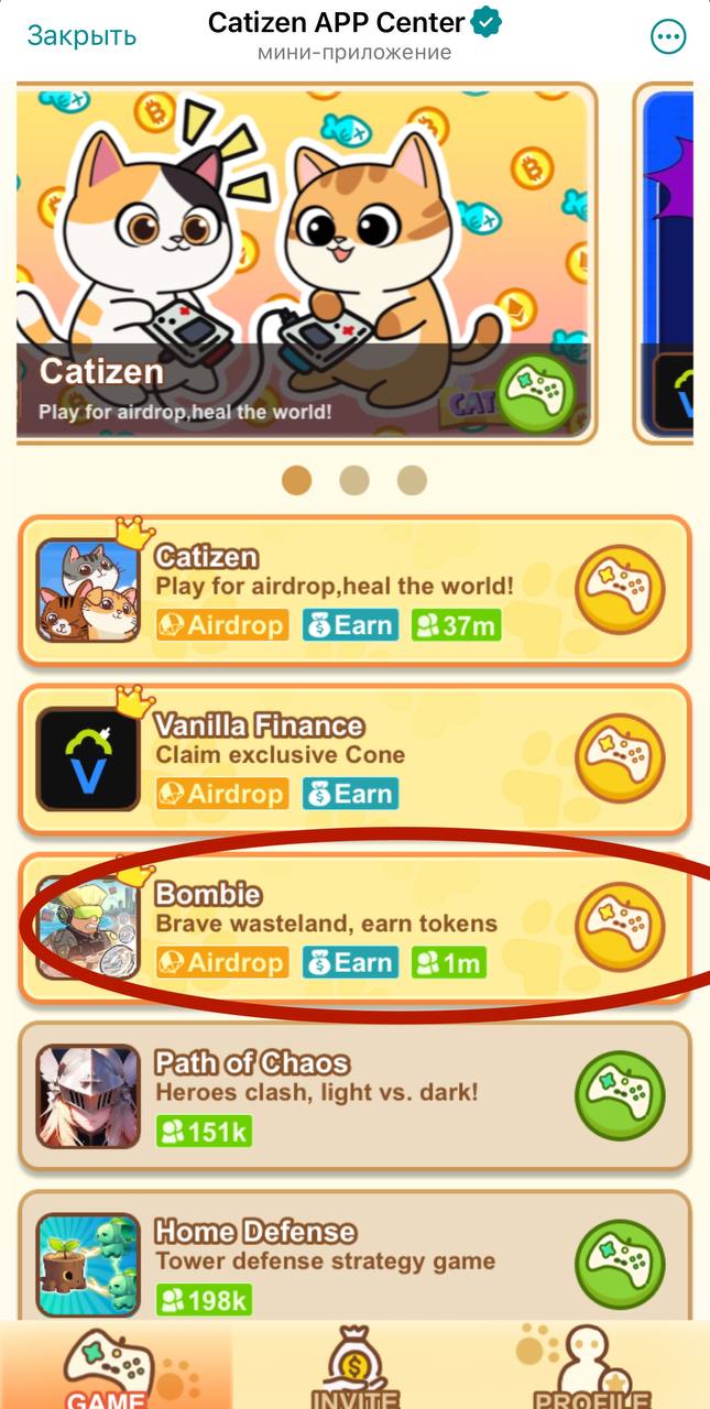 https://t.me/catizenbot/bombie?startapp=g_1002_1251811 ⬅️