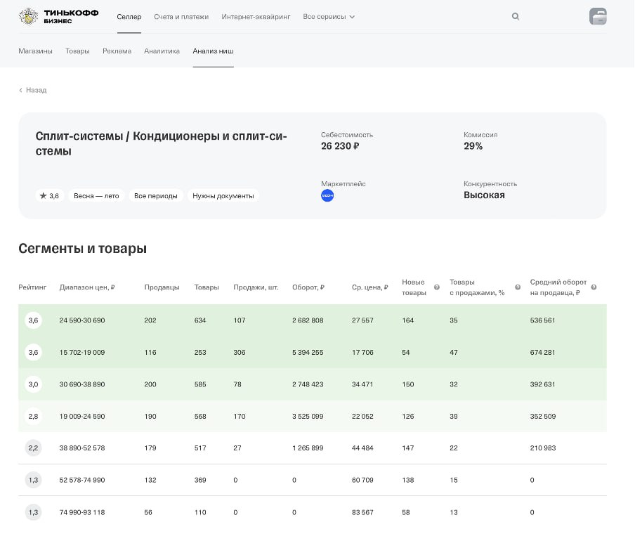 Что продавать на маркетплейсах: в Тинькофф Селлере появился умный анализ товарных ниш