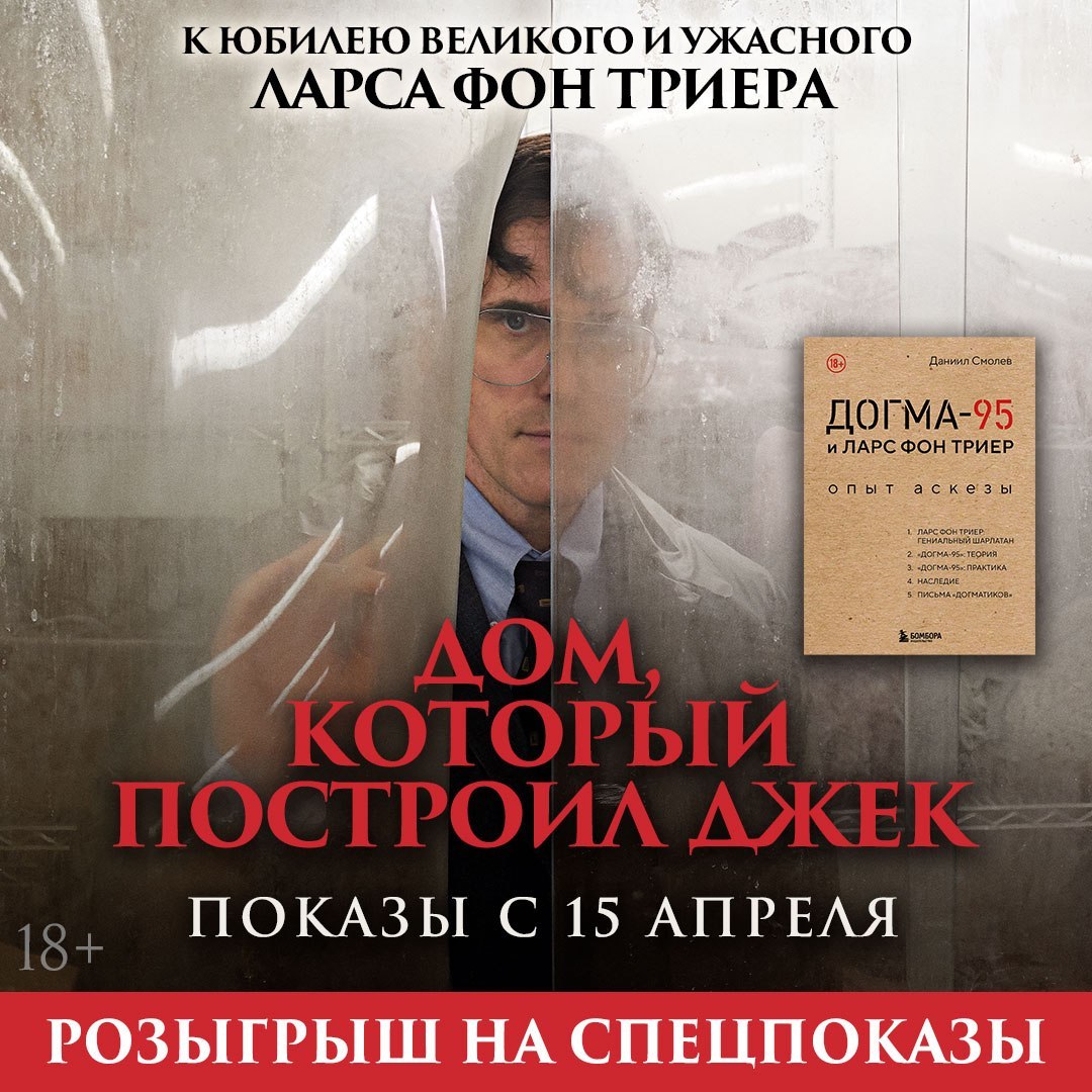 Дарим книги Даниила Смолева «Догма-95 и Ларс фон Триер. Опыт аскезы» и билеты на премьеру самого провокационного фильма от главного скандалиста мира кино — «Дом, который построил Джек» Ларса фон Триера, приуроченные к его юбилею.