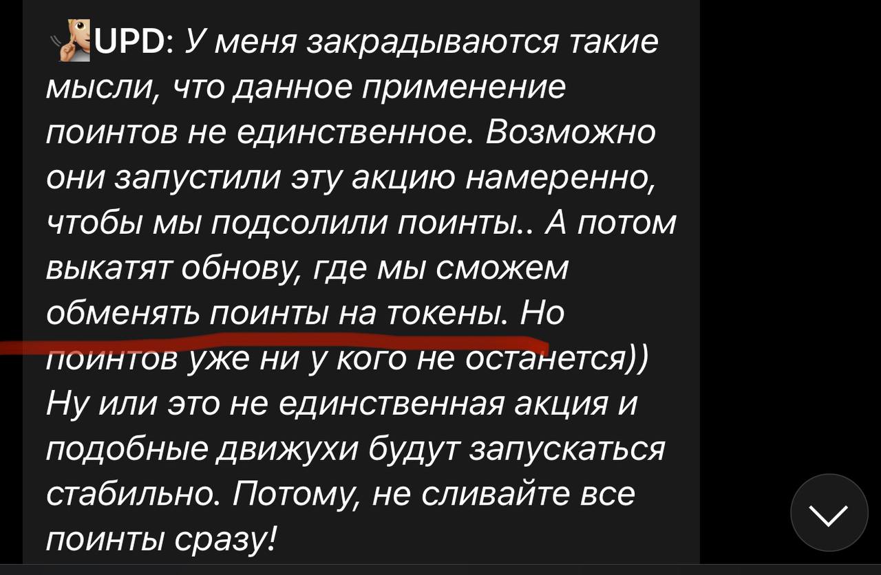 Нас целый год мурыжили с этим поинтами всячески заставляя слить их, я и сам слил добрую половину на все это говно.. И теперь дают токены за эти поинты? Ну пиздец.. Жлобский мув..