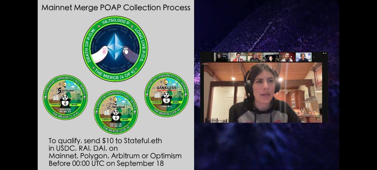 Ласт найт удачно прошло слияние ETH и была трансляция на канале Ethereum Foundation на ютубе. И короче была замечена одна интересная херня.. В честь слияния Ethereum Foundation выпускает POAP. Пруф чек в видео на тайминге 3:22:00.