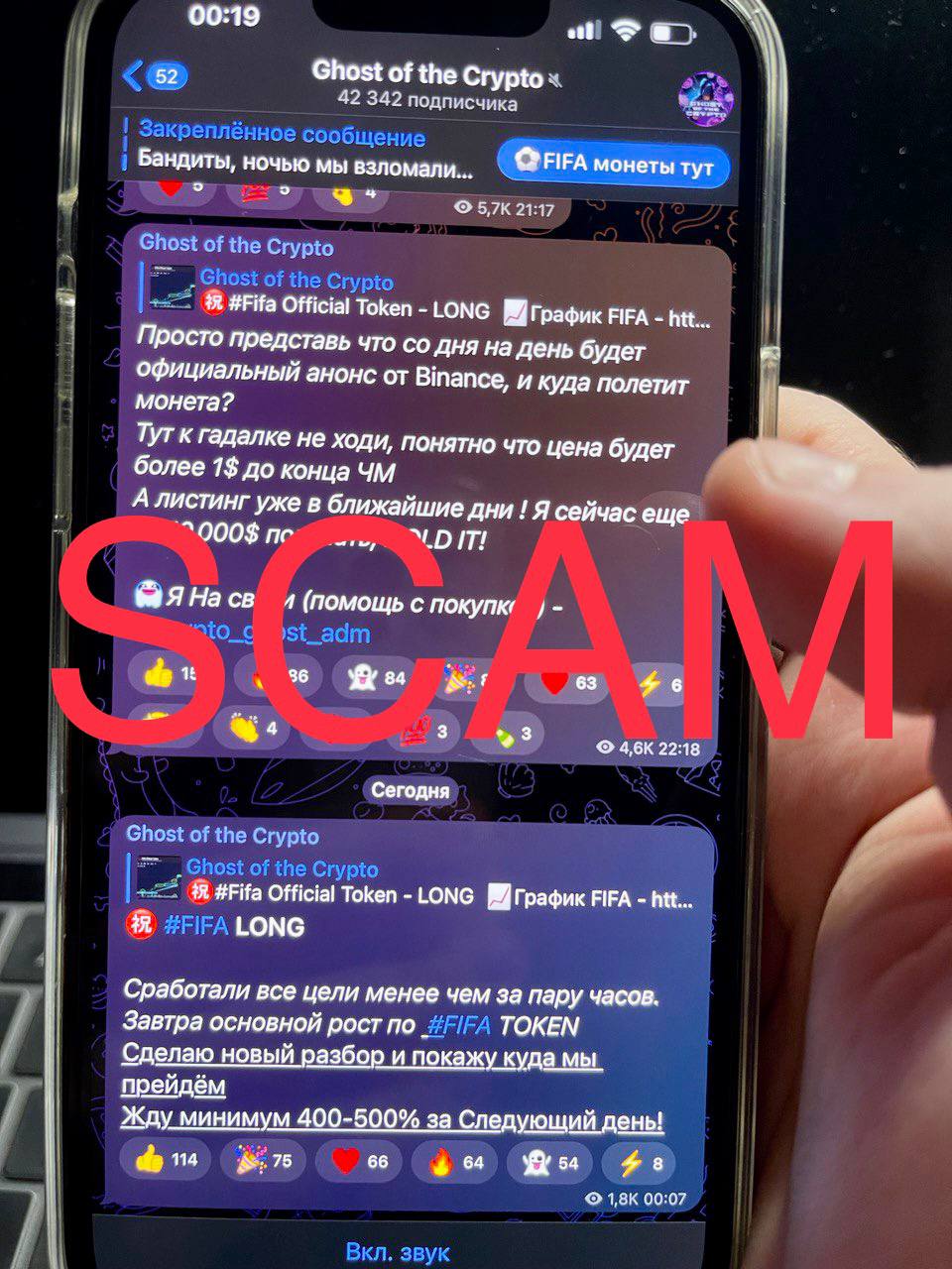 И вот недавно Ghost of the crypto пользуется актуальной темой футбола и начинает загонять свою аудиторию в скам-монету $FIFA, которая якобы даст куча иксов на листинге.. Мол в закрытых, приватных сообществах все только и делают, что обсуждают эту монету, а добрый админ решил поделится с нами этой инфой чтобы заработали все! Мол будет листинг на бинанс и тд.. А сейчас ее можно заранее купить на pancakeswap..